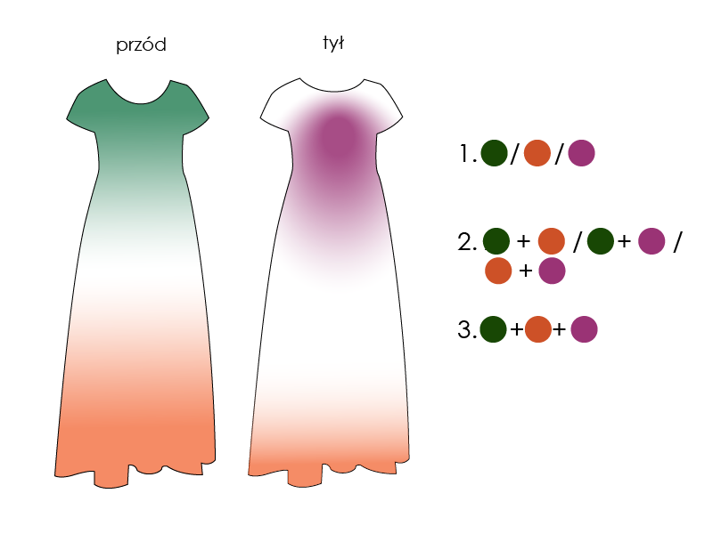 miejsce A, B lub C (malowanie jednej części sukienki)